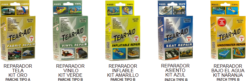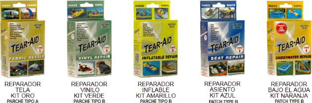 CADA KIT DE TEAR-AID® PARCHE REPARADOR CONTIENE: