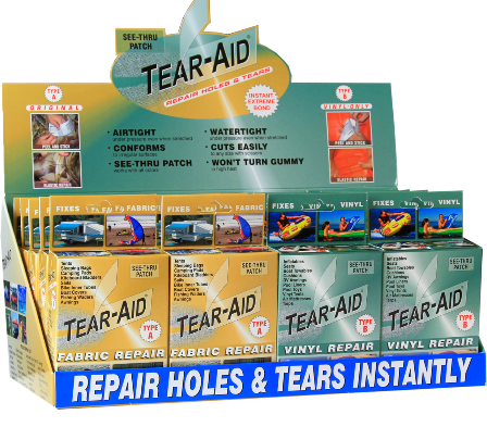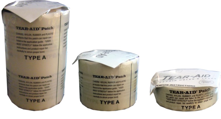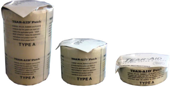 Los rollos TEAR-AID ® Parche de reparación, están disponibles en tres anchuras. Se corta fácilmente con unas tijeras a cualquier tamaño. Disponen de una línea estampada de fácil corte. Debido a que puede adherirse a sí misma, la superposición de piezas de una pulgada puede crear tamaños ilimitados.